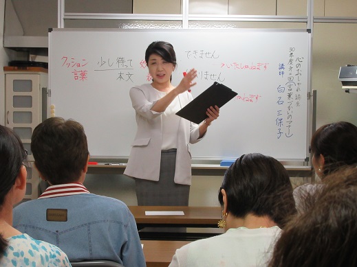こんにちは。 関西作法会 HP委員Yです。 先日開催しました「心のおしゃれ講座」のご報告です。 講座を担当した白石講師より感想をいただきました。 日時 平成30年7月28日 午後1時30分~3時 会場 トータルマナー株式会社 講師 トータルマナー株式会社講師 白石 三保子 内容 キラリと光る☆大人の会話・言葉づかいのマナー 心のおしゃれ…