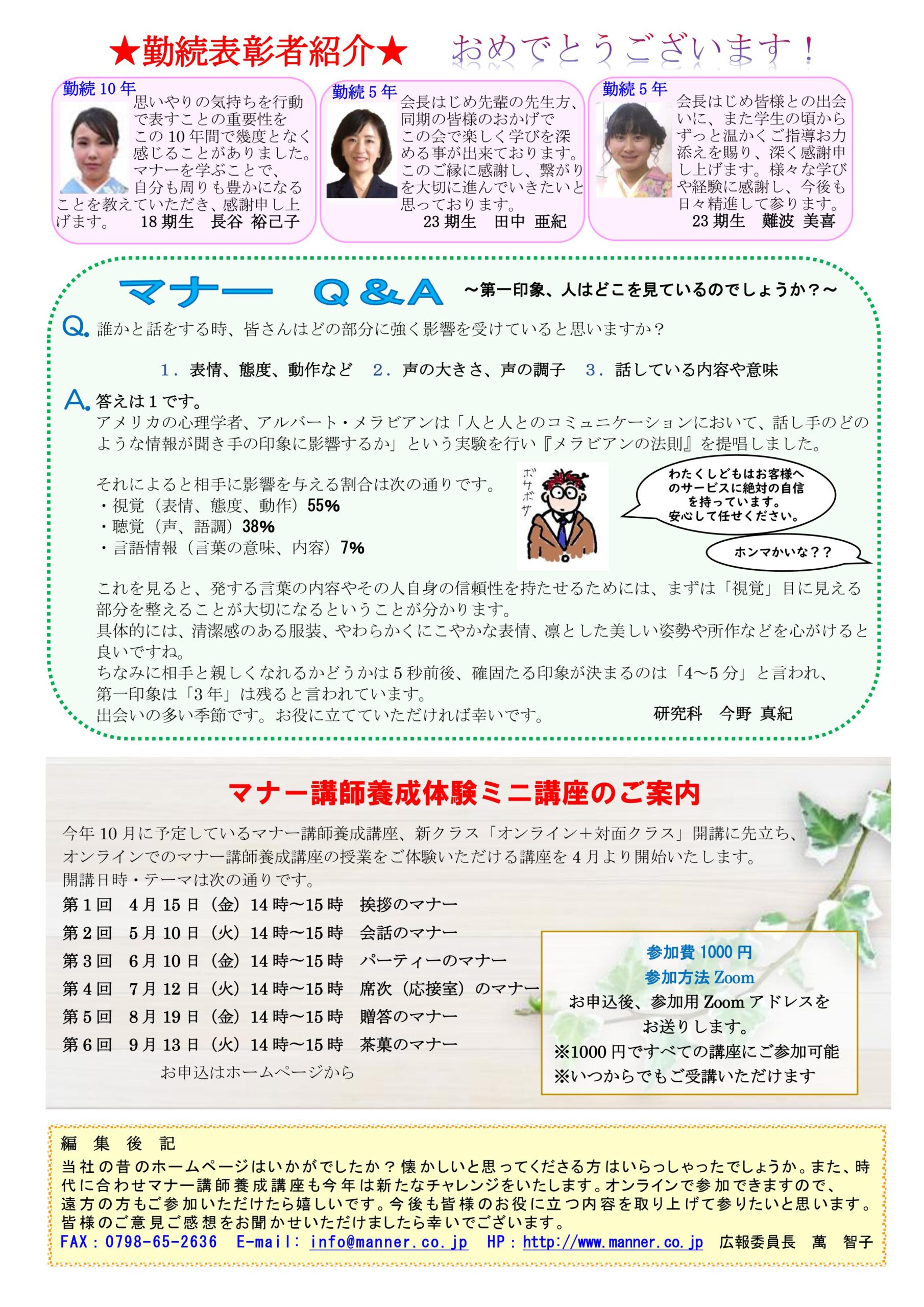 マナー講師養成講座 オンライン体験ミニ講座