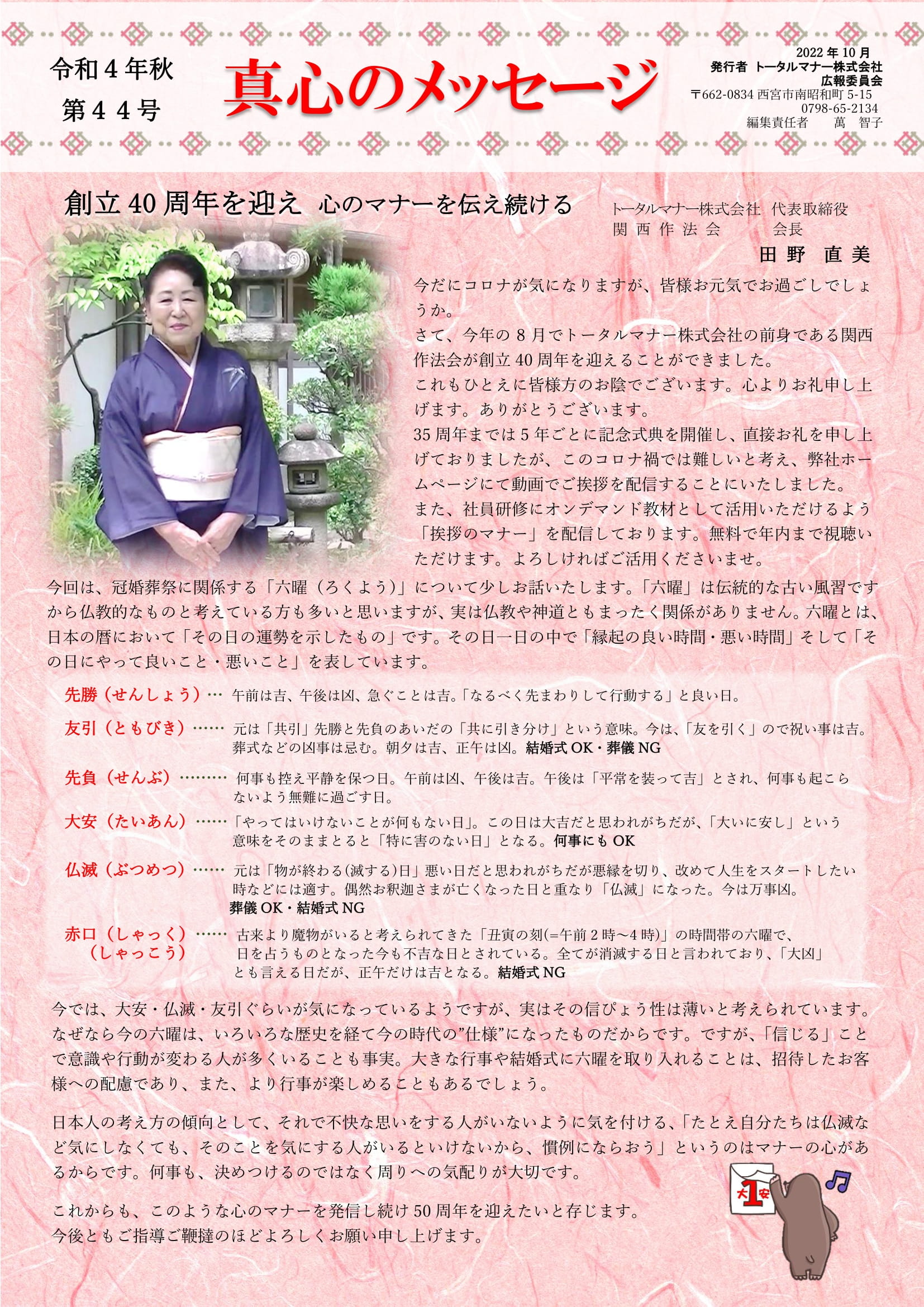関西作法会会長あいさつ