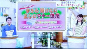 平成27年8月11日(火) 関西テレビ「ゆうがたLIVEワンダー」の「イマ知り!」のコーナーに トータルマナー株式会社 関西作法会会長 田野直美がテレビ出演いたしました。