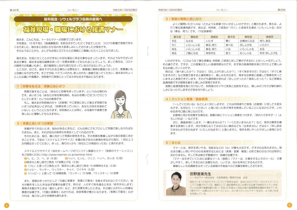 一般財団法人 秋田県民間社会事業福利協会様発行の広報誌『ハーモニー第49号』に掲載されました。